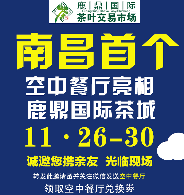 南昌首个空中餐厅11月26-30日在鹿鼎国际茶城荣耀升空!